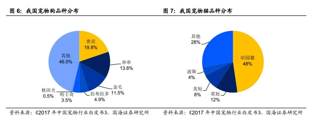 养宠门槛降低,养宠变得更容易。 根据《2017 年中国宠物行业白皮书》 调查结果显示,串串和田园猫均占据较大份额,消费者越来越强调自身体验, 逐渐看淡品种这类因素。 由于不再需要购买昂贵的宠物名种, 在宠物上的花费变得可以接受, 使得养宠这个看上去门槛较高的消费更加亲民化,越来越多的普通大众也成为“铲屎官”。