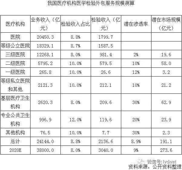 伴随我国老龄化不断加深,分级诊疗全国落地推行和民营医院快速发展,预计未来几年我国独立医学实验室行业仍将以年复合增长率30%的速度增长,到2020年,我国独立医学实验室潜在市场规模将近300亿左右,渗透率达9%左右。未来几年,独立医学实脸室行业将新增近200亿。