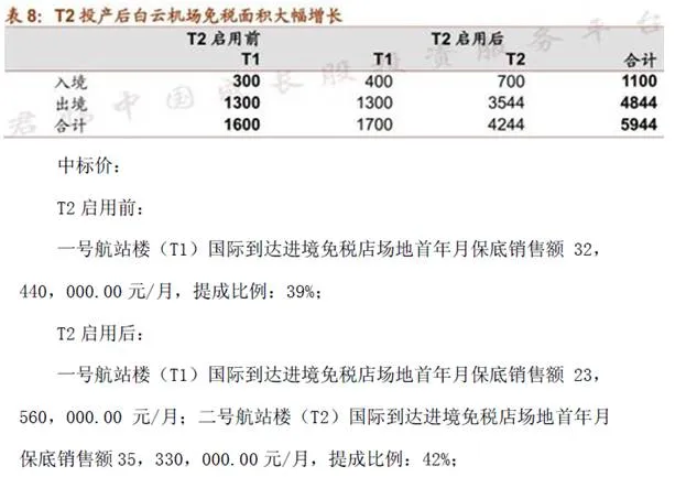 实际上,机场商铺的运营,特别是出入境免税,其实际经营金额是远高于保底价,实际运营肯定是要按照实际营收提成办法计算收入。有投资机构分析认为:从进出境免税店总面积来看,白云机场T2(合计4244平)约为首都T3进出境(1.1万平)的37%,后者免税年销售额约为37亿元。如果达到后者坪效,按此比例,白云T2出入境的免税年销售额将达到14亿元(37×37%),超出现有保底额约5.8亿元(出4.24,入3.95)。
