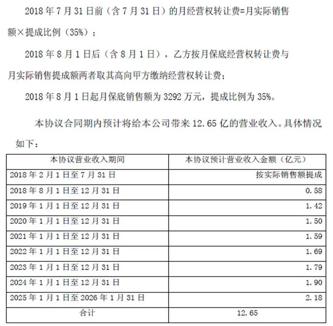 以上为特许经营收入,未包含300元/月/平方物业租赁费。未包含物业管理费等。