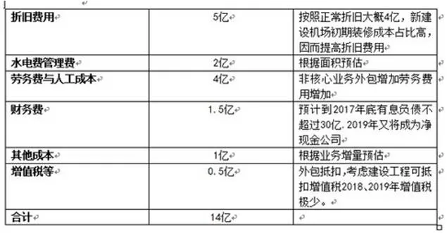 此外,且不说上述各项费用预测是否合理。除折旧外,其他成本构成合计8.3亿左右。已经比与白云机场债券短融资时预计“2018经营活动比2017增加7亿”要多了,说明上面的成本增量预测是很保守的!