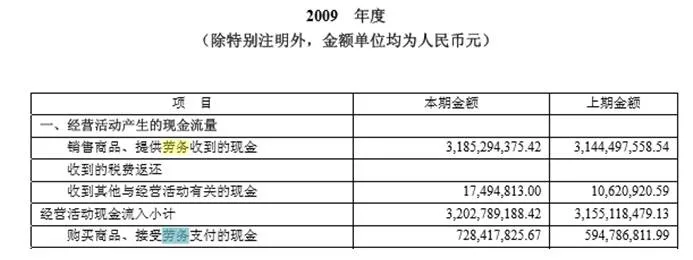 2009年,员工6636人,支付薪酬8.17亿,购买商品、接受劳务支付的现金7.28亿