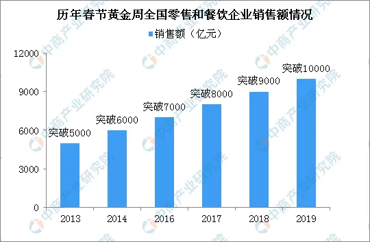 回顾以往春节餐饮行业消费,受益于春节假期加持,消费屡创新高。据商务部监测,2019年除夕至正月初六,全国零售和餐饮企业实现销售额约10050亿元,比去年春节黄金周增长8.5%。