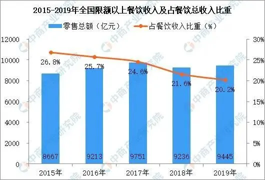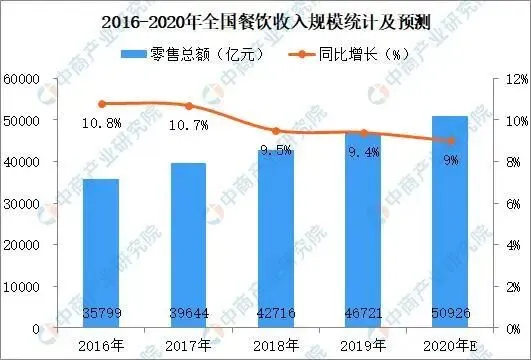 此前,据中国烹饪协会预计,2020年餐饮市场发展速度将继续保持在9%上下水平,市场规模有望上升至五万亿元。目前,餐饮行业正加快进程由外延扩张型向内涵集约型转变、由规模速度型向质量效率型升级。