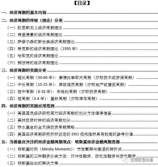 1、1920年成立的美国国民经济研究局(National Bureau of Economic Research,简称NBER)对经济周期的研究可能最具参考意义,NBER的主要研究项目是不断修订其组建者米切尔的著作《经济周期》,并自1929年开始对经济周期的顶部和底部进行判定。