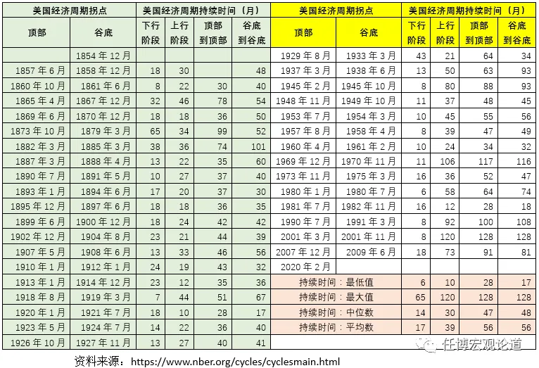 4、虽然NBER成立于1920年,但其积累的宏观经济时间序列可以向前回溯至1854年,因此其对经济周期的划分实际上是自1854年开始。