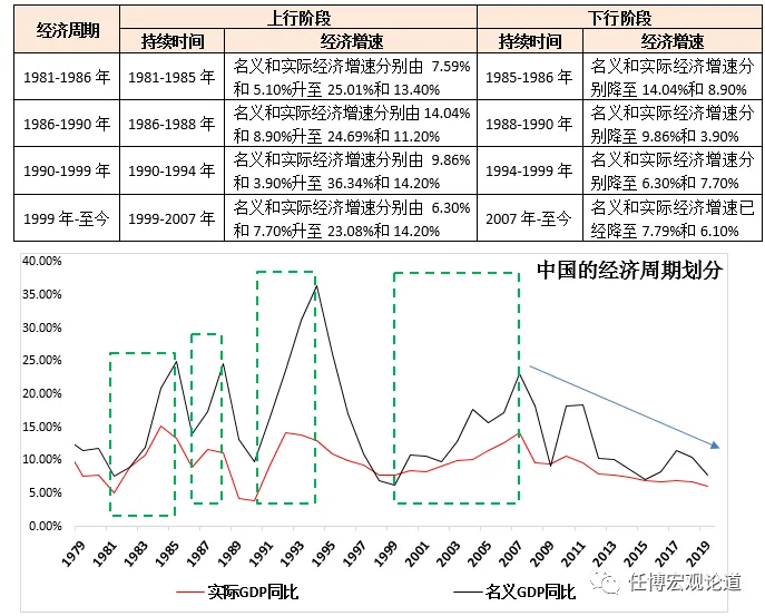 1、如果单以经济增速来看,1980年以来的四十年时间里,我国大致经历四个经济周期(前三个经济周期的持续时间分别为6年、5年和10年)。