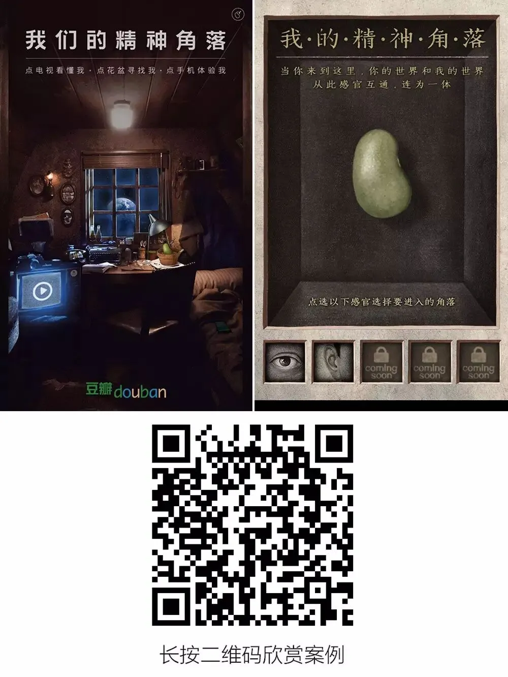 豆瓣的《我的精神角落》和爱分享的《生成结婚证》在H5广告的传播上寻找到了新突破,而《年年压岁 岁岁火影》和《小爷吴亦凡凡心所向》在H5的内容执行上贡献了新玩法。本月作品总体创作质量不高,但是破局之作数量却是我们做H5广告月总以来最多的一个月,而本月的行业新趋势可以说就是广告传播的“形式突破”了!
