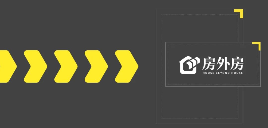 在logo标识的设计上,通过三个增长箭头,表示房外房帮助客户稳健投资房产增长财富,突破帕累托最优的局限性,获取超额收益。黄色的箭头也将成为房外房的超级品牌符号,让所有房产买卖决策:精准,专业。