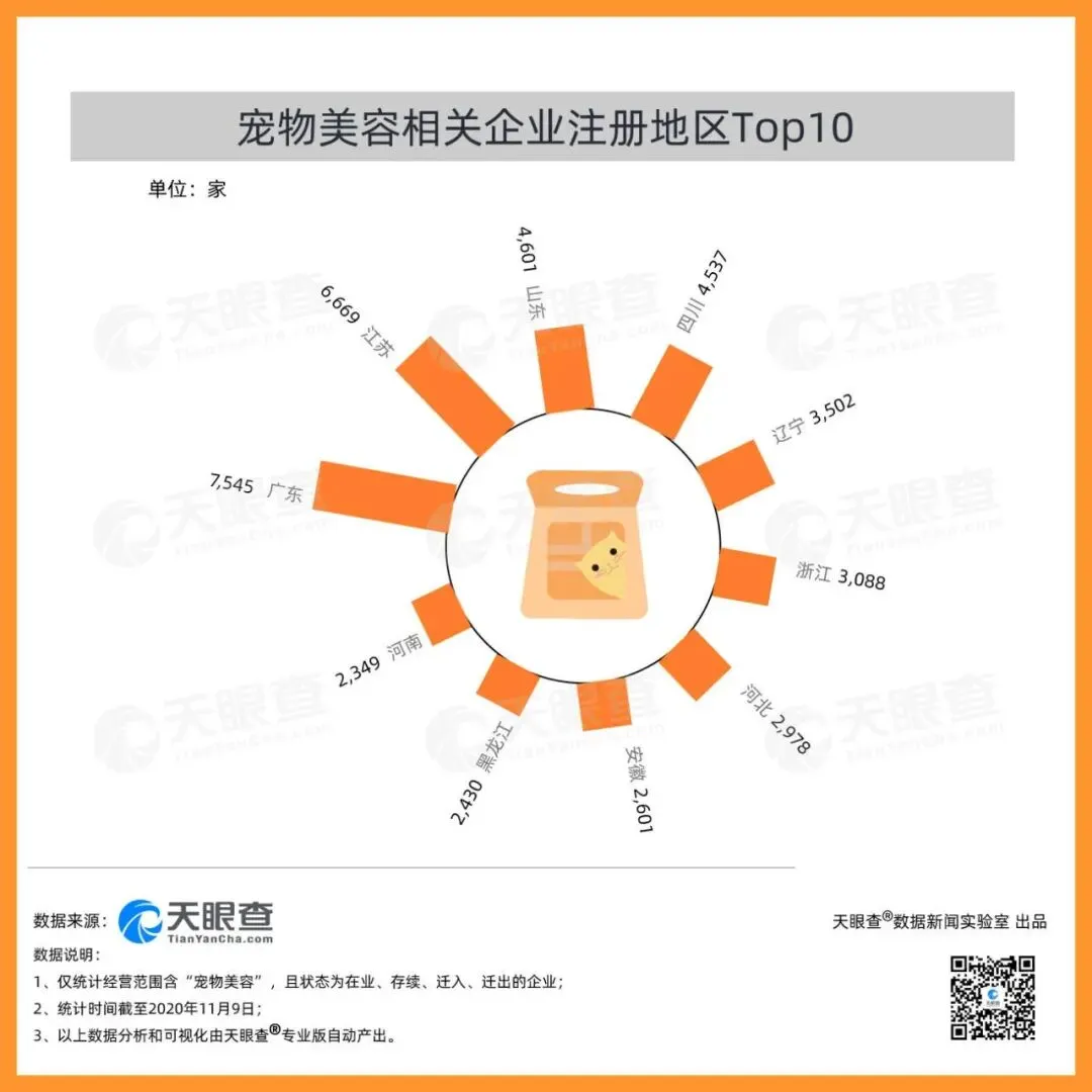截至11月,以工商登记为准,天眼查专业版数据显示,我国今年前10月新增宠物美容相关企业超9,500家,其中第二季度新增近4,000家,环比增长103%。