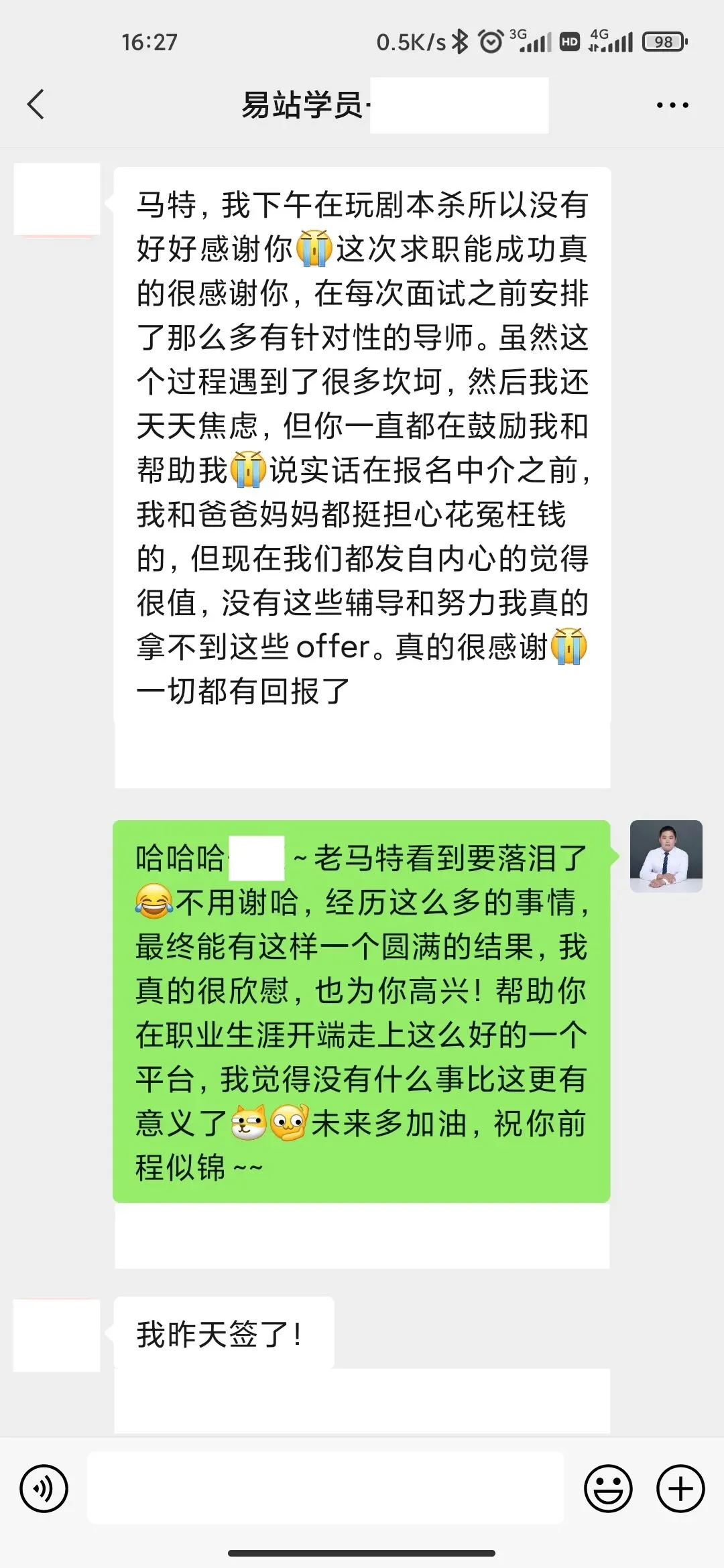 最初小D其实先是拿到了一家Tier 3公司的Offer(月薪1w),本来打算去,被班主任Matt劝住了,觉得他目前的能力,可以去更好的,去这个三线的太亏了。就和我们的商务拓展部门的同事沟通,为同学寻找更好的机会。最终也是众望所归,帮助小D拿到了Tier 2的Offer,对于小D来说真的是一个非常非常棒的起点了