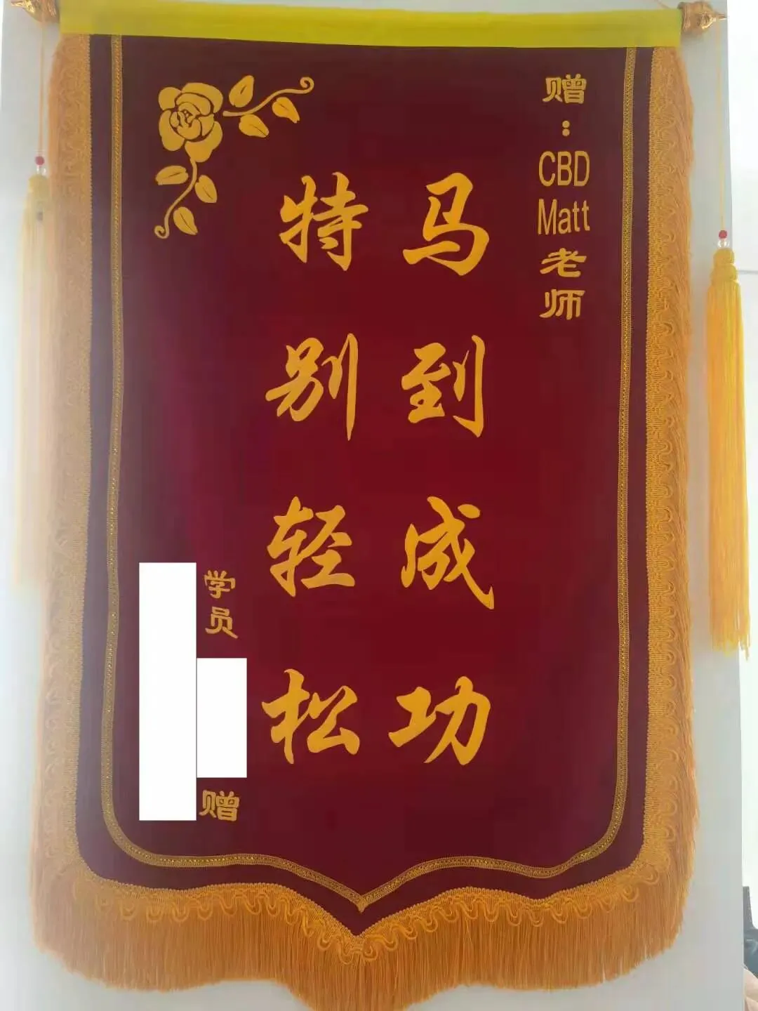 小D也是特别感谢他的班主任Matt,还专门送了一面锦旗,上面写着“马到成功,特别轻松”,同事们还都挺为Matt骄傲的hh~
