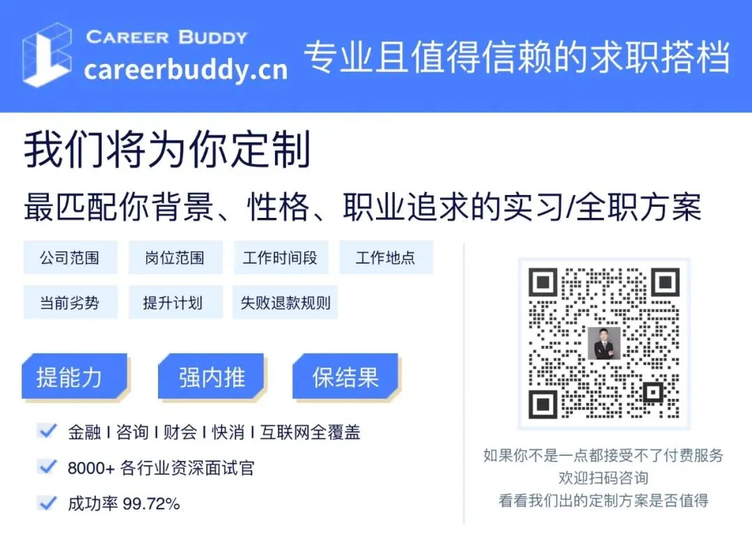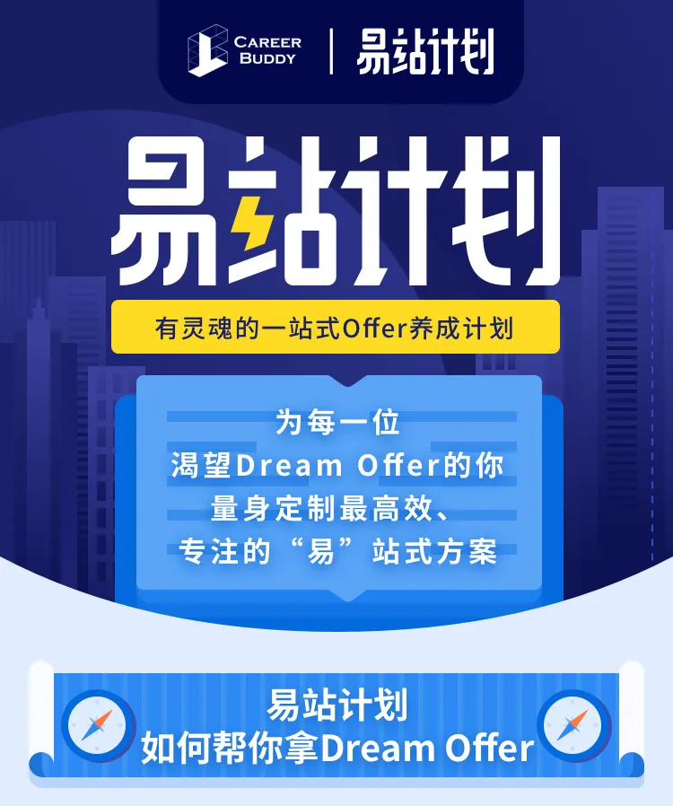 ——如果你真的很想提高自己拿dream offer的成功率,有一个很好的职业起点,且希望自己能高效拥有超越同龄人的竞争力——那么CareerBuddy想诚挚地给同学们推荐下「帮你一站收获心仪Offer」的易站计划。