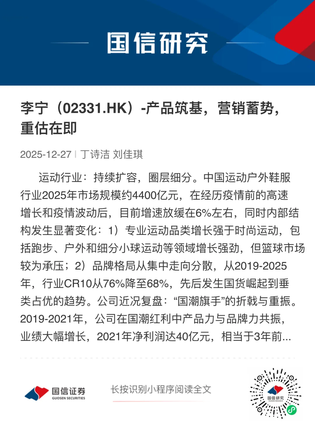 文字节选自报告《国信证券-深度报告:李宁(02331.HK)-产品筑基,营销蓄势,重估在即》,进入小程序查看报告全文