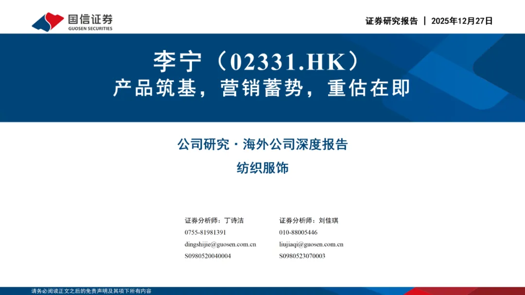 报告名称:《国信证券-深度报告:李宁(02331.HK)-产品筑基,营销蓄势,重估在即》
