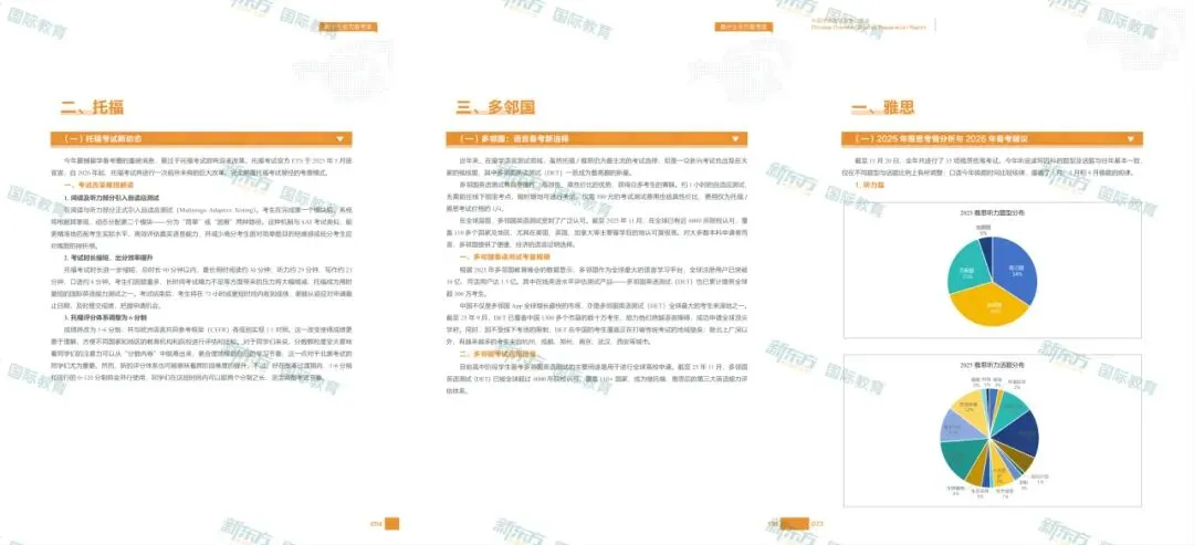 语言能力是海外求学的基石。面对雅思、托福、多邻国、PTE等多种语言考试的选择与备考,考生常常感到困惑。本白皮书对此进行了专章详解,提供最新的考试动态、题型分析及备考策略对比。