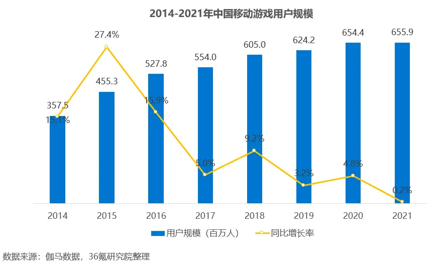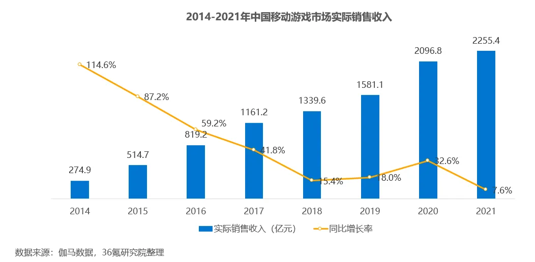 此外,我国移动游戏市场经历多年高速发展,用户红利已逐渐见顶,市场逐渐趋于饱和。伽马数据显示,2021年中国移动游戏用户相较于2020年仅增长0.2%,用户规模趋于稳定。同时,2014年-2018年,我国移动游戏市场销售收入增长率逐年下降,尽管受新冠疫情影响,2020年我国移动游戏市场销售收入同比增长率回升至32.6%,但随着疫情逐渐稳定和常态化,2021年移动游戏市场销售收入同比增长率降至7.6%。