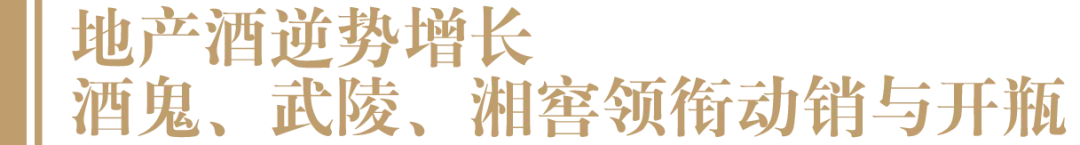 郑应平告诉酒业家,2022年,湖南地产酒市场规模约100亿元左右,占据市场总额近1/3,以回款统计口径来看,排在前三位的湘酒品牌分别是:酒鬼酒(超50亿元),湘窖(超20亿元),武陵(超10亿元)。同时,武陵和湘窖今年在湖南市场表现仍然突出,500元-800元价位段的湘酒动销情况非常理想。