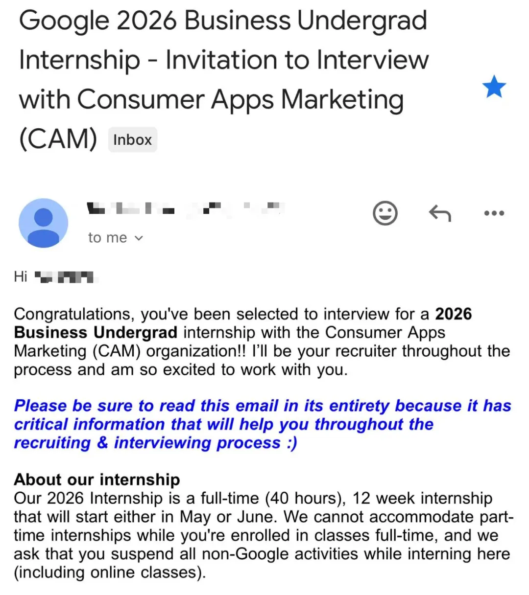 谷歌面试来啦!最近西游学员收到了互联网科技大厂——谷歌的实习生面试邀请!