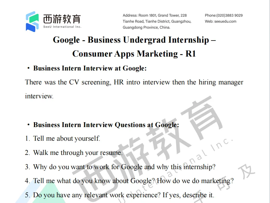 面试岗位隶属于消费者应用营销组织,该部门负责谷歌核心产品的市场推广工作。获得面试机会的候选人将与招聘专员全程配合,完成后续面试环节。