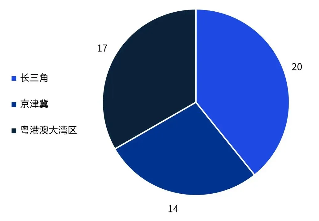 从城市群分布来看,长三角地区继续保持领先地位,接近40%的上榜企业来自这一区域,与2024年持平(图2)。