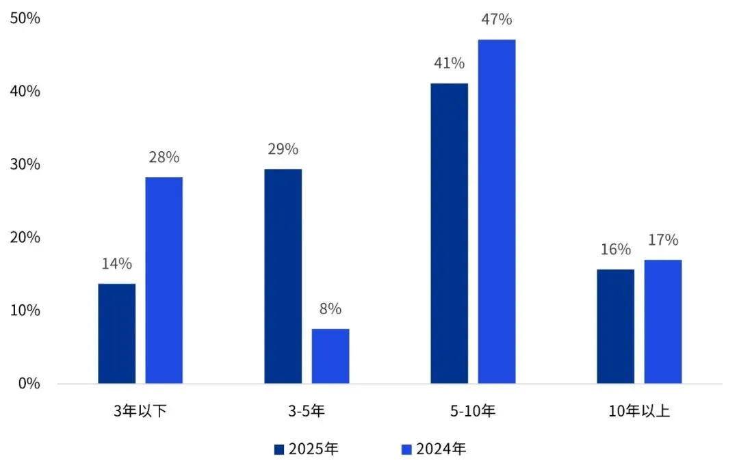 从成立时间看,超过四成的上榜企业创立于近五年内,行业创业氛围依然活跃。值得关注的是,成立时间为3-5年的企业占比达到29%,较2024年显著上升22个百分点(图5)。