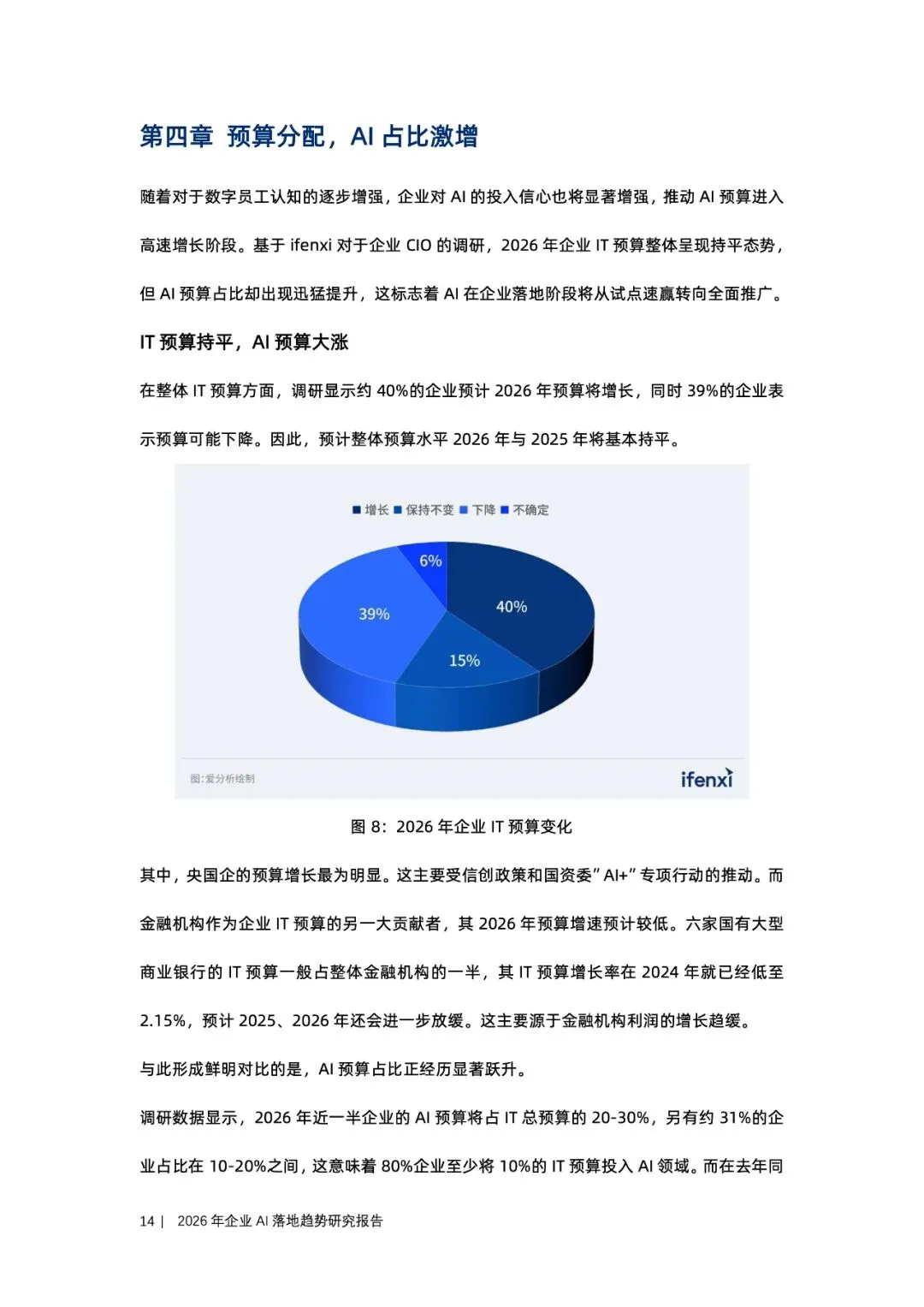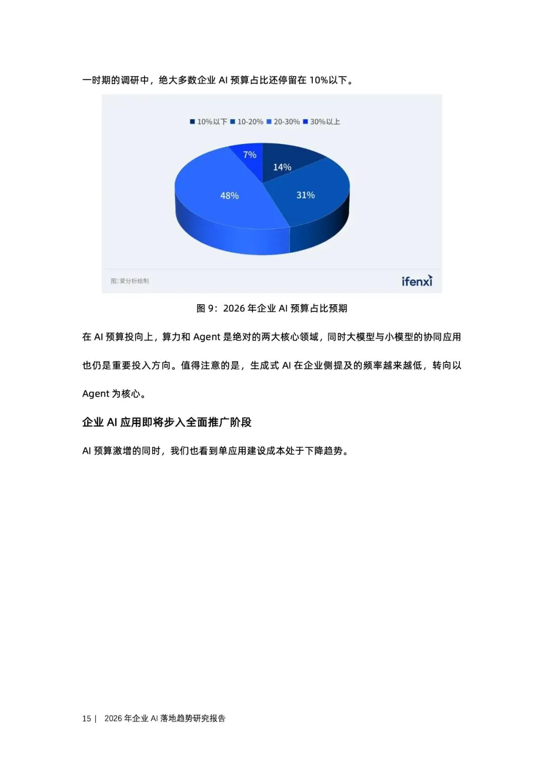 当AI从“工具”升级为“数字员工”,企业人均产能的计量单位正被重写。调研显示,2026年八成企业把至少10%的IT预算砸向AI,近半比例更冲到20-30%,而单应用建设成本却因小模型+知识图谱RAG成熟下降逾两成;56%企业已完成试点,明年全面推广。