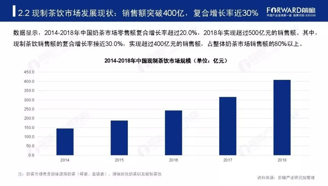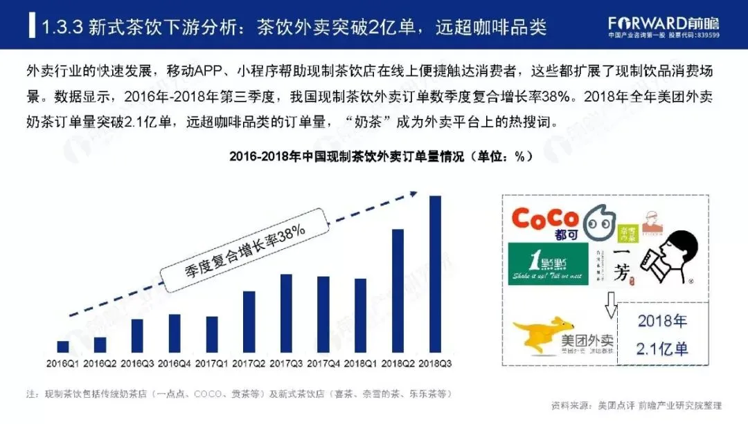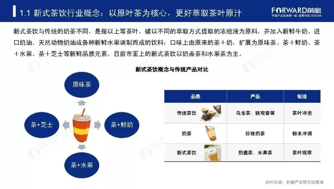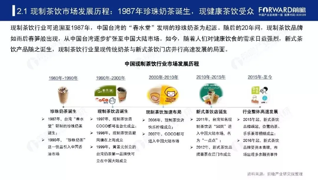 现制茶饮行业可追溯至1987年,中国台湾的“春水堂”发明的珍珠奶茶为起源。随后的20年间,现制茶饮品牌如雨后春笋般出现,从中国台湾逐步扩张至中国大陆市场。如今,随着人们对健康饮食的需求日益强烈,新式茶饮产品随之诞生,现制茶饮行业呈现传统奶茶与新式茶饮门店并行高速发展的局面。为了进一步了解新式茶饮市场发展现状及前景,前瞻产业研究院特此发布《2019-2024年中国新式茶饮行业研究报告》对行业发展做出深度分析。
