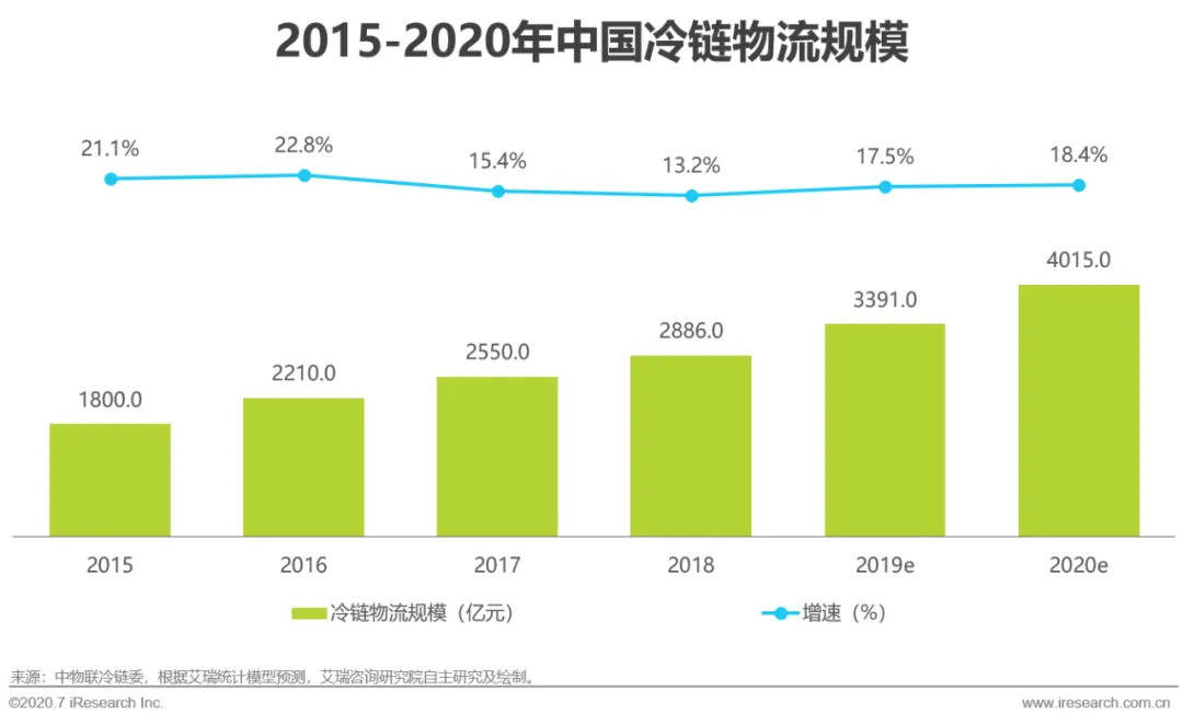 伴随着消费升级,国民对生鲜食品需求量越来越大,生鲜电商市场得到快速成长。随着生鲜电商的崛起,冷链物流已成为生鲜电商发展重要的支撑力量。冷链物流一般包括预冷、包装、仓储、运输、配送等环节,主要的基础设施有冷库、冷藏车、保温盒、超市的冷藏陈列柜等,其中任何一个环节冷链设施的缺失都会让生鲜产品品质大打折扣。近年来,我国冷链物流规模逐渐增长,但我国冷链物流流通率仍旧处于较低水平,随着用户对生鲜产品的品质和要求愈发严格,冷链物流作为保障食品和民生安全的重要手段,其基础设施布局及智能化水平仍需进一步加强。