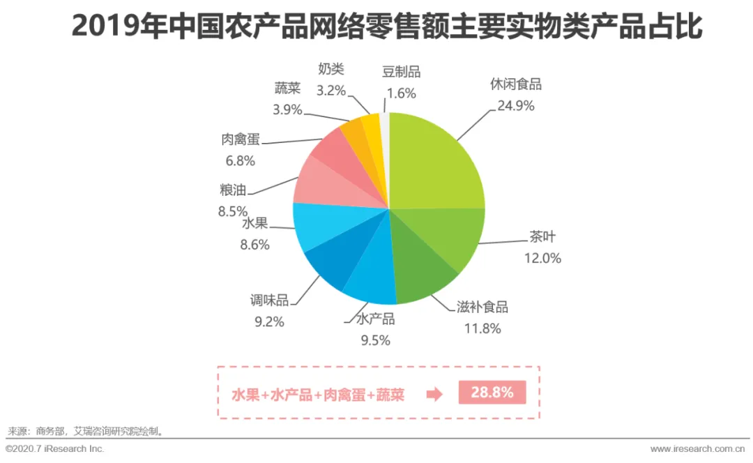 由于生鲜产品标准化程度低、保质期短、损耗率高等特点,我国生鲜产品销售以线下农贸市场及大型农产品交易中心为主,线上渗透率较低。而生鲜产品传统产业链仍存在着链条较长,流通环节多,整体效率较低等问题,随着冷链物流系统的建设以及新一代消费群体逐渐成熟,未来生鲜电商具有较大的成长空间。