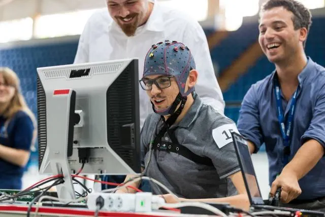 2016年12月,美国明尼苏达大学的Bin He与他的团队取得一项重大突破,让普通人在没有植入大脑电极的情况下,只凭借“意念”,在复杂的三维空间内实现物体控制,包括操纵机器臂抓取、放置物体和控制飞行器飞行。该研究成果有望帮助上百万的残疾人和神经性疾病患者。