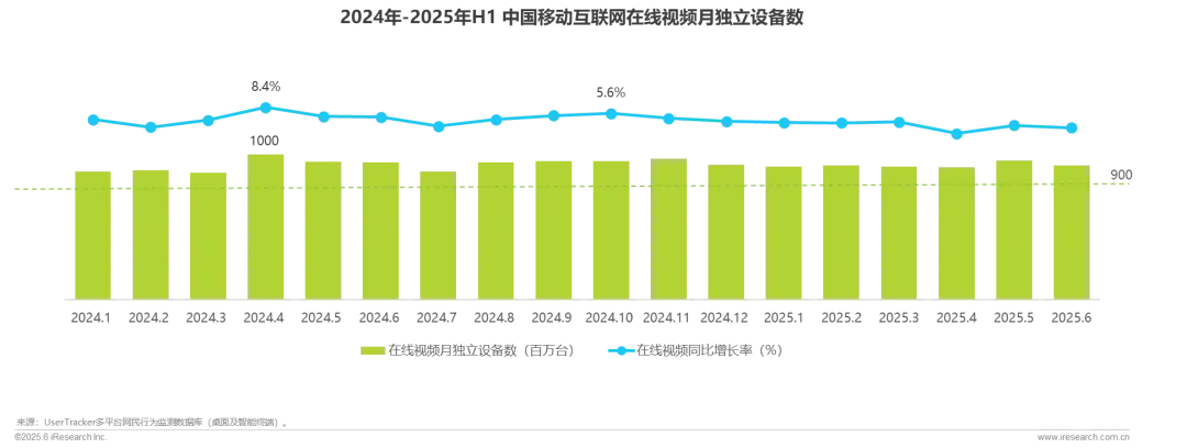 2024年以来在线视频出现回暖迹象,月独立设备数同比呈现小幅增长,尤其在2024年Q2和Q4两季度同比增幅较高,全年月平均同比增长率达到3.4%。