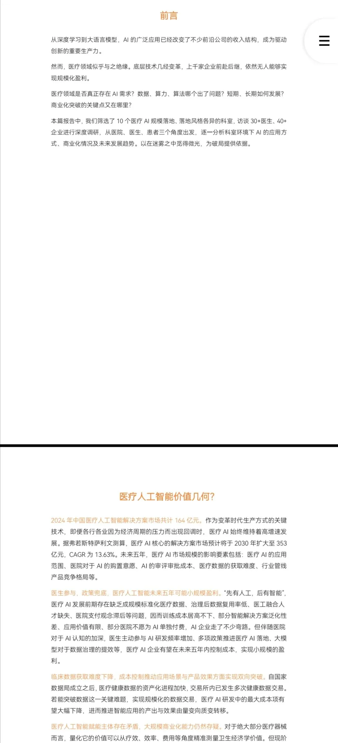 【完整版:①非星球用户查看:下载说明及人工智能智库星球介绍(一年>400篇报告,一年为你节省找资料时间>7天),有疑问添加微:guihuayuguihua;②星球用户在星球APP搜索“2025年医疗人工智能产业报告”。】