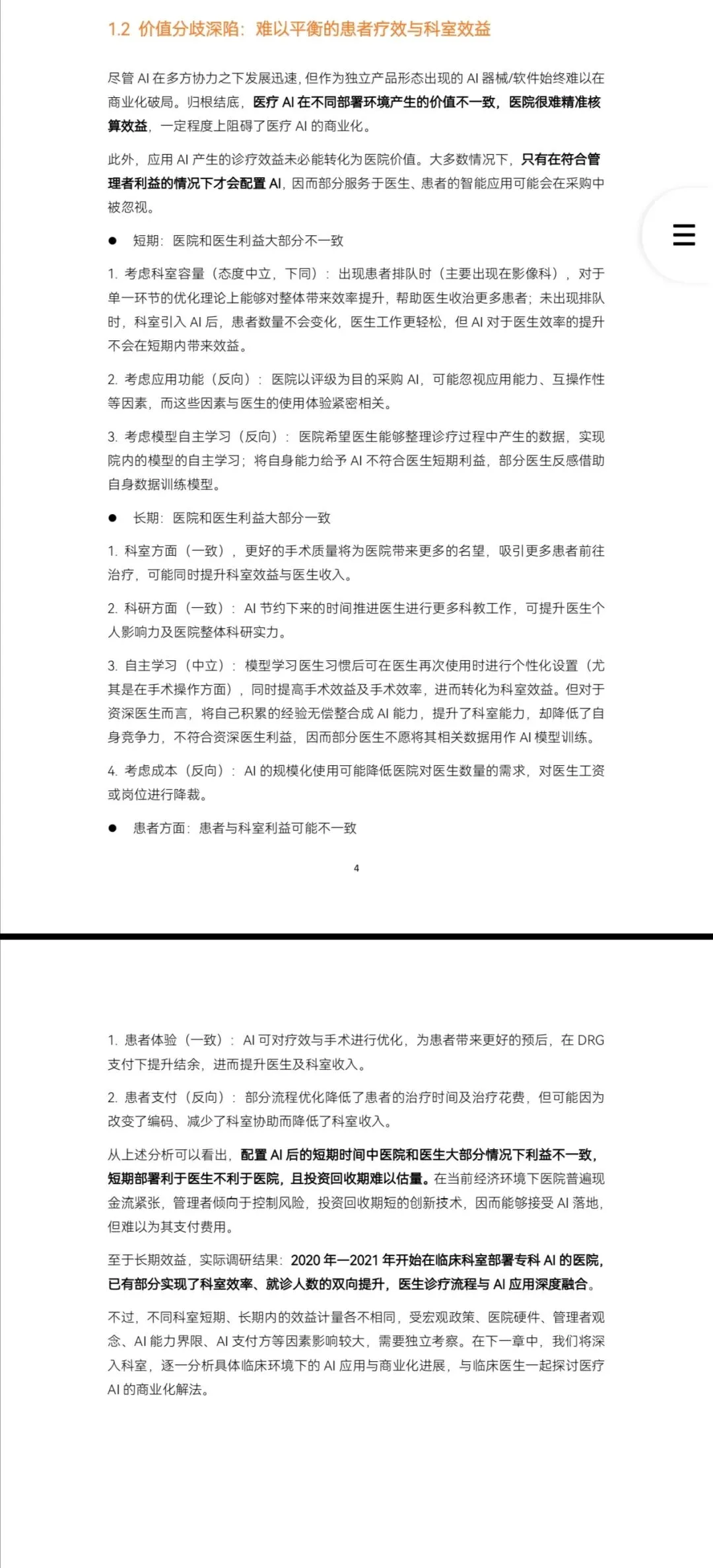 方法论启示在于:医疗AI需跳出“效率提升”单一逻辑,转向“价值增量创造”;商业化需构建“政策+患者+商保”多元支付体系,基层场景侧重政策驱动,三甲医院聚焦科研与疗效溢价;技术落地坚持“医工结合”,医院深度参与数据标注与模型迭代,提升产品临床适配性。