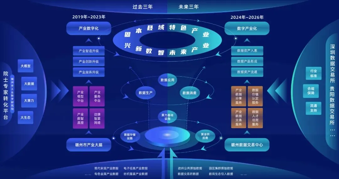 赣州工研院将持续围绕江西省“1269”行动计划和赣州市“7510”行动计划产业升级,依托以往产业数字化发展的经验,继续发挥出院士专家成果转化平台智才引进“领头雁”作用,遵循院士专家指导教诲,抢抓数据要素未来发展机遇,计划未来三年,与国家级数据交易所合作,共同建设赣州数据交易中心,打通数据资产的认定、合规,完成数据资产入表、产品形成、资产流通,开展数据资产数商生态培育,缔造面向特定行业场景的各类垂直应用产品,在提升工业的智能化水平、加快推进产业数字化的同时,驱动产业数字化、数字产业化飞轮循环上升,实现数据要素价值的全面释放,打造赣州数字经济发展新高地。