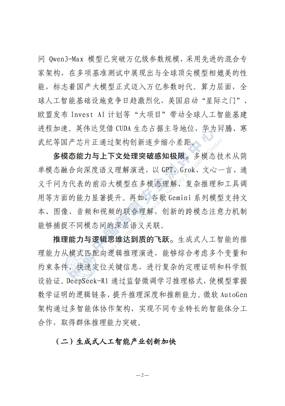 当前,生成式人工智能技术高速迭代,在模型架构、多模态能力、推理逻辑等方面实现突破,产业创新与应用范围持续拓展,但同时也带来动态性、对抗性、系统性的安全风险,攻击面从单一模态向多模态延伸,从技术接口向人类认知接口拓展。全球各国高度重视人工智能安全治理,联合国推动包容性治理,中国统筹发展与安全,美国推行行业自律导向的宽松治理,欧盟强调分级管理与集中治理,形成了差异化的治理格局。
