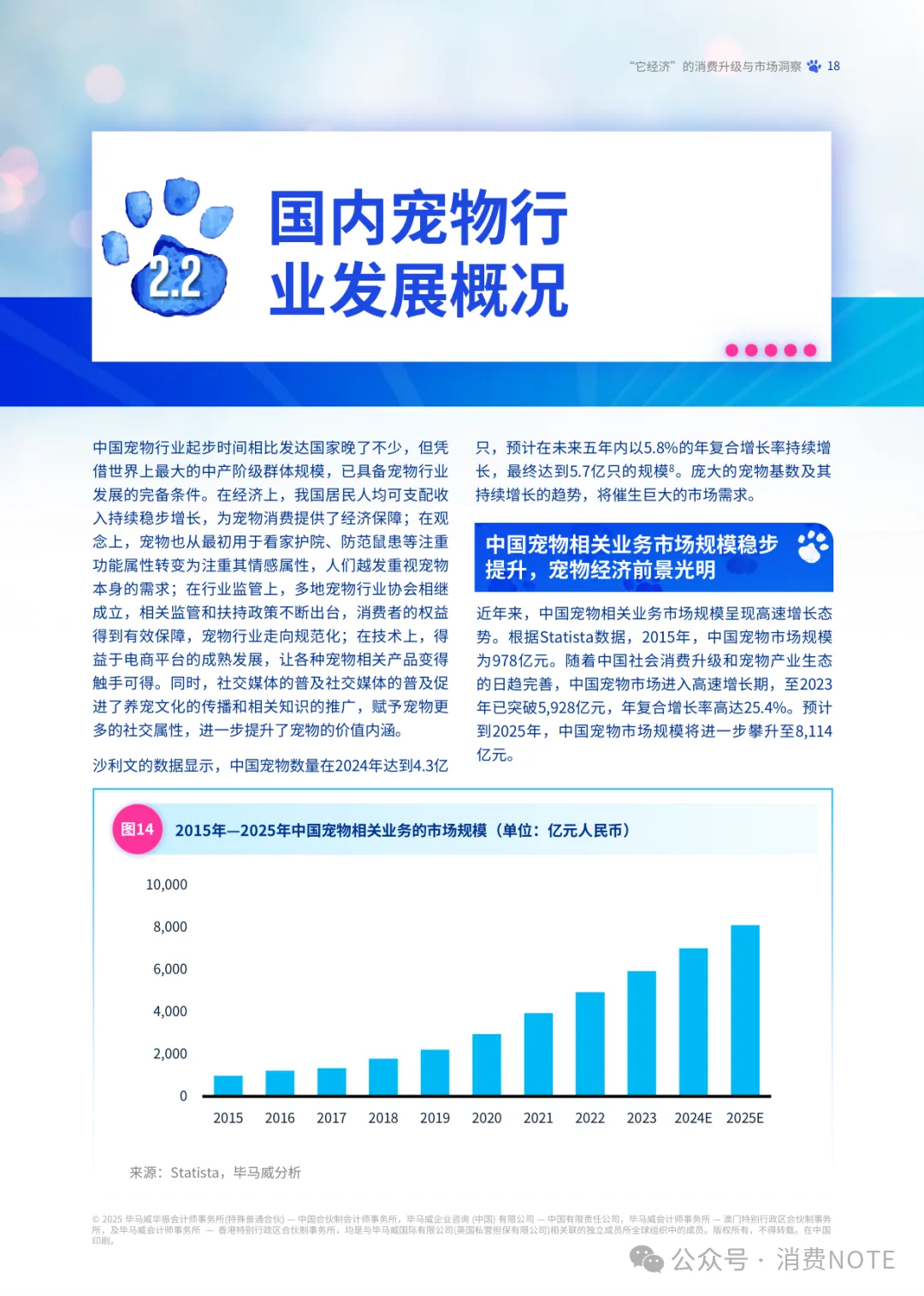 宠物市场细分赛道不断涌现,2025年将呈现多元化趋势,包括供应链重构与国产替代加速、消费升级与科技创新双向赋能、跨界融合与社交经济创新实践等。同时,“银发经济”与“下沉市场”与“它经济”结合,为宠物经济开辟新增长极。毕马威中国发布此报告,旨在通过数据支撑和专业视角分析,探讨宠物行业与市场现状及发展前景,并为行业可持续发展提供战略指导。