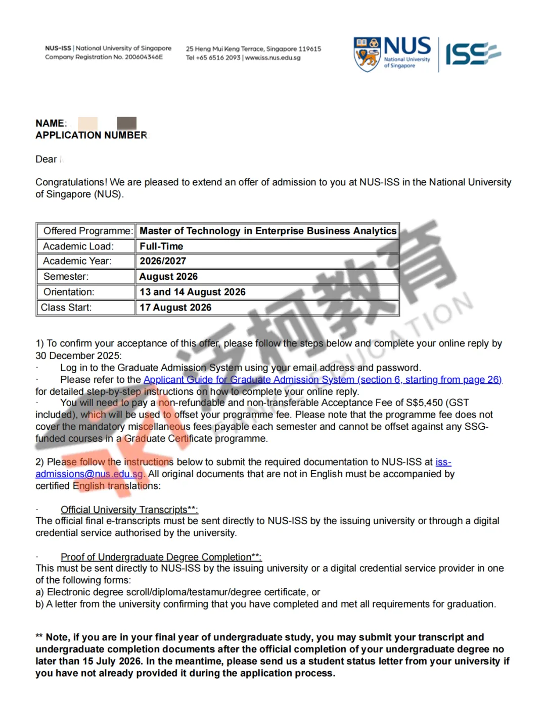 本地申请人:需参加 NUS-ISS 举行的线下面试和入学考试。