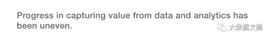 当数字原生代公司基于数据分析建立系统,老牌公司需要通过巨大努力改革或改造现有系统适应数据驱动决策的时代并不容易。一些公司在技术领域投入巨资,但他们尚未改变自身的组织结构使这些投资发挥效用。许多公司正在努力发掘人才,升级业务模式以及调整组织结构来获取数据分析的成果。