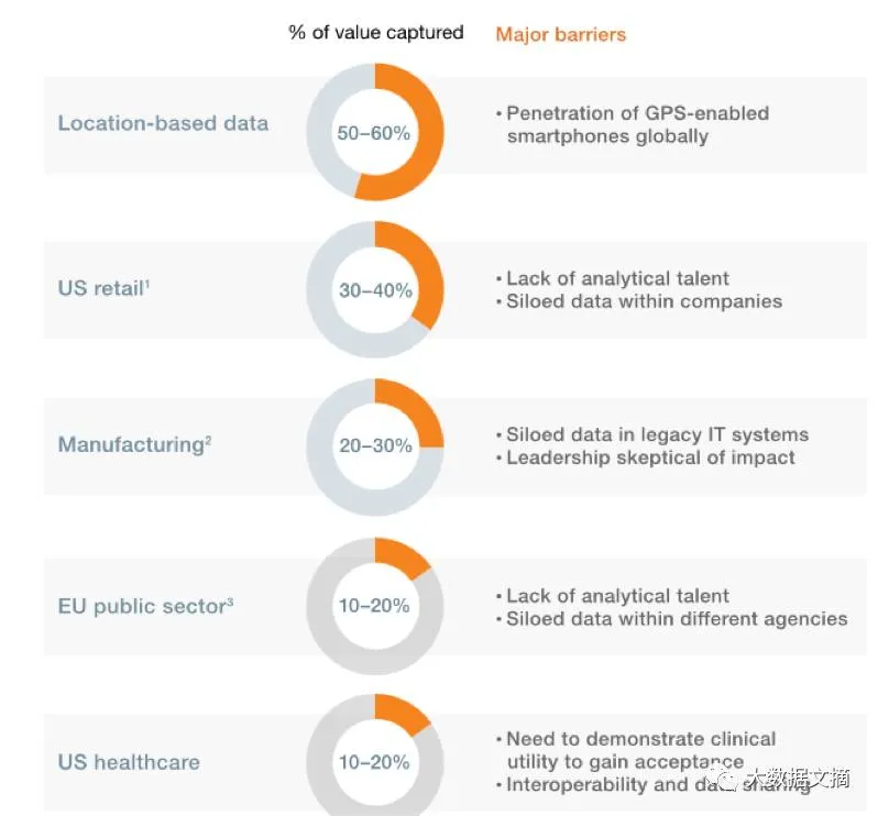 美国零售业[1] | 30-40% | ·数据分析人才短缺 ·相关数据分散在各家公司 |