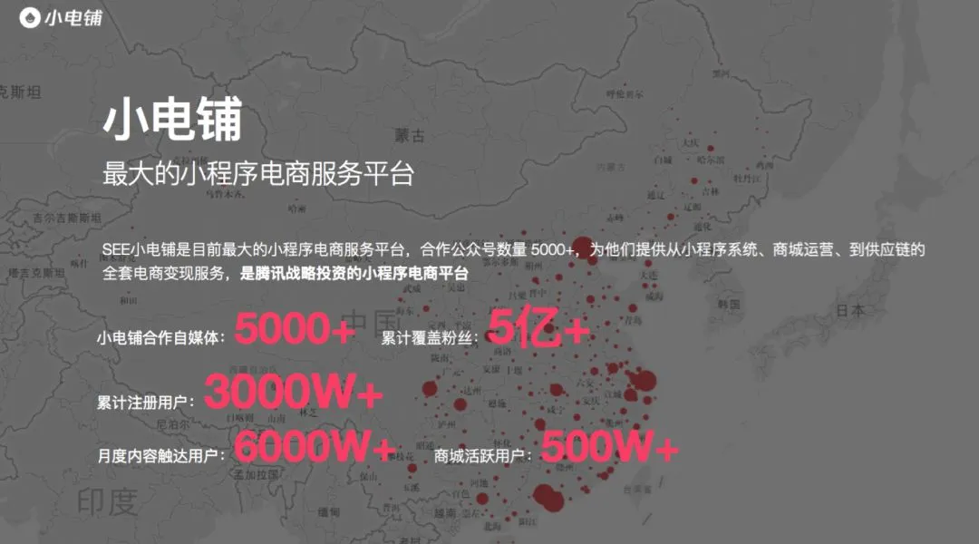 [小电铺]作为微信生态内最大的小程序电商服务平台,已与5000+自媒体合伙开店,在用户与内容流量上,占据绝对性优势: