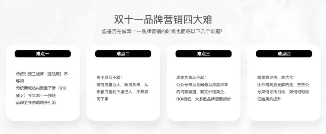 SEE小电铺品牌营销负责人陈希指出,品牌在双十一营销有着四大难题:
