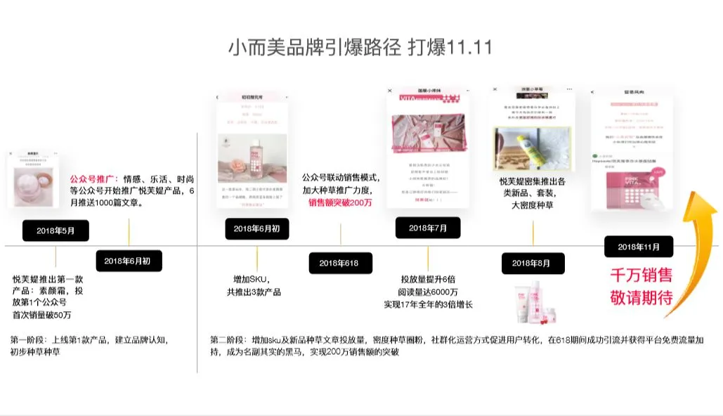 从上线第一款商品到3大爆品月均销量破200万,从推送第一篇推文到提及品牌推文阅读总量达6000万,悦芙媞这一切的变化仅发生在和小电铺合作的不到5个月时间里。优质推文高密度种草,社群化运营促进用户转化,小电铺联合悦芙媞共同玩转微信生态、玩爆小程序电商。