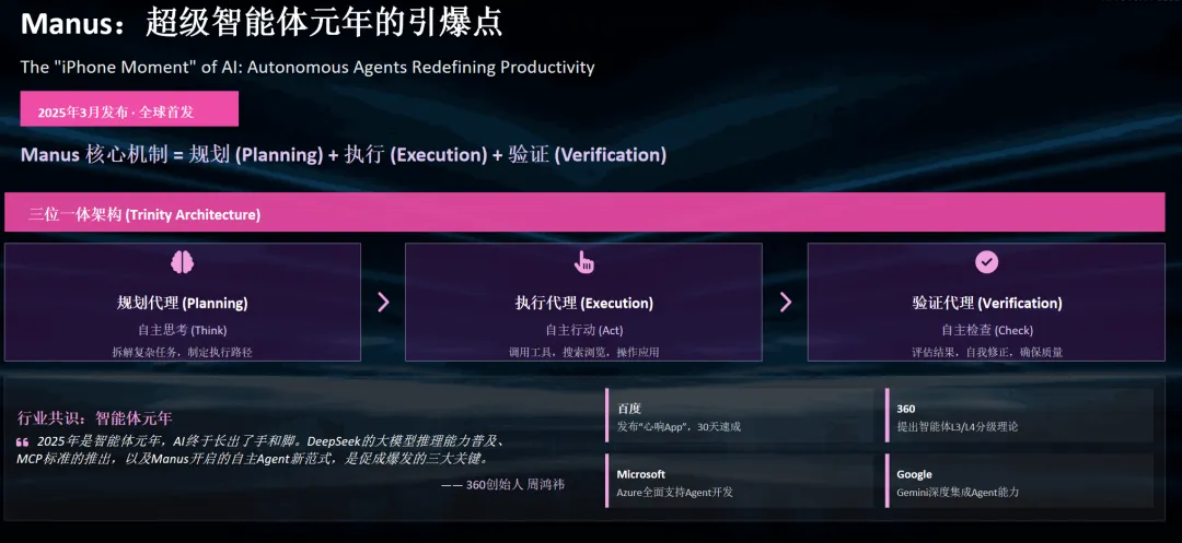 以Manus带代表的超级智能体不仅以自身技术创新留下浓重一笔,更引发了整个行业对“AI下一步干什么”的叙事转向。