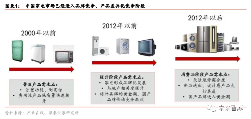从国内家电市场的整体发展情况而言,中国消费者正在逐步缩小与发达国家之间的差距,消 费模式的悄然改变,消费结构的日益中高端化,对消费品牌的分层将日益明显。