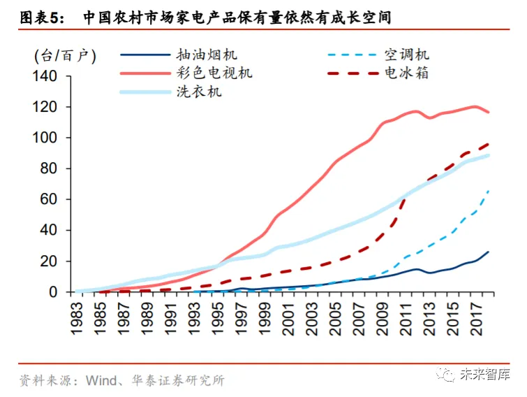 中国经济的整体规模或人均消费能力保持上行的趋势,继续推动耐用品消费。2012 年家 电下乡政策后,部分大家电保有量进入较高水平,单纯以保有量提升为驱动力的需求增长 有所减弱,而产品升级、品牌升级的更新需求趋势更为明朗。