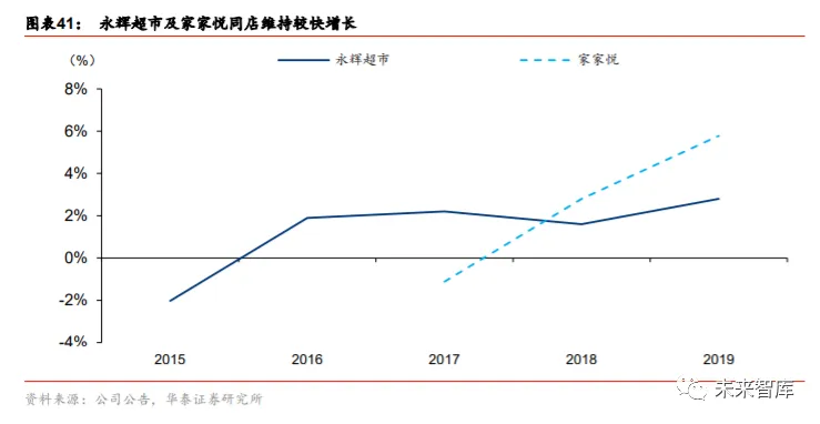 超市龙头凭借强大的供应链优势、门店经营管理优势,规模快速扩张,并仍有较大开店空 间。生鲜超市龙头永辉超市、家家悦,依托生鲜消费渠道升级推力,2016-2020H1 营收持 续稳健增长;便利店龙头红旗连锁(002697 CH,买入,11.25),凭借小业态超市的高景 气度,2016-2020H1 规模扩张的同时营收快速提升。永辉超市、家家悦、红旗连锁等行业 龙头企业持续推动渠道扩张,在优势区域依托供应链优势不断加密门店,并且通过并购及 自建推动门店跨区域扩张。消费升级趋势未变,龙头公司内生增长动力较强、同店保持稳 健较快增长,我们预计未来龙头企业渠道扩张仍有较大空间。