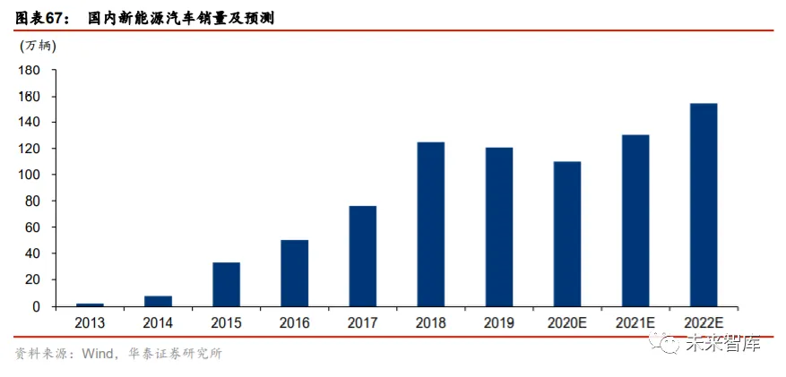 未来随着补贴政策逐步退坡,新能源汽车市场有望平稳过渡到需求驱动。2017 年 9 月 28 日,工信部、财政部、商务部、海关总署、国家质检总局联合发布了《乘用车企业平均燃 料消耗量与新能源汽车积分并行管理办法》(以下简称“双积分”),于 2018 年 4 月 1 日 起正式施行。新能源汽车发展告别单纯靠补贴的第一阶段,进入奖惩结合的第二阶段;随 着技术进步,产业链成本下降,未来将进入市场化产品驱动发展的第三阶段。根据双积分 政策的要求,我们测算 2019 年要求新能源乘用车 103 万辆左右,2020 年要求新能源乘 用车 135 万辆左右。