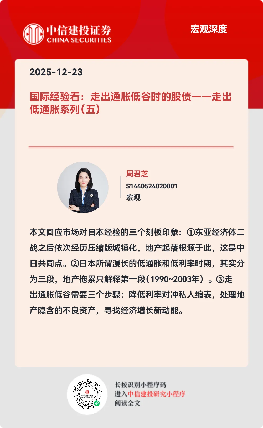 本文回应市场对日本经验的三个刻板印象:①东亚经济体二战之后依次经历压缩版城镇化,地产起落根源于此,这是中日共同点。②日本所谓漫长的低通胀和低利率时期,其实分为三段,地产拖累只解释第一段(1990~2003年)。③走出通胀低谷需要三个步骤:降低利率对冲私人缩表,处理地产隐含的不良资产,寻找经济增长新动能。
