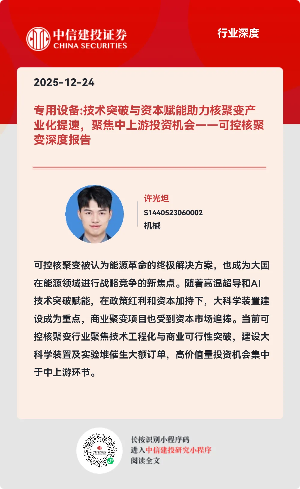 证券研究报告名称:《技术突破与资本赋能助力核聚变产业化提速,聚焦中上游投资机会——可控核聚变深度报告》